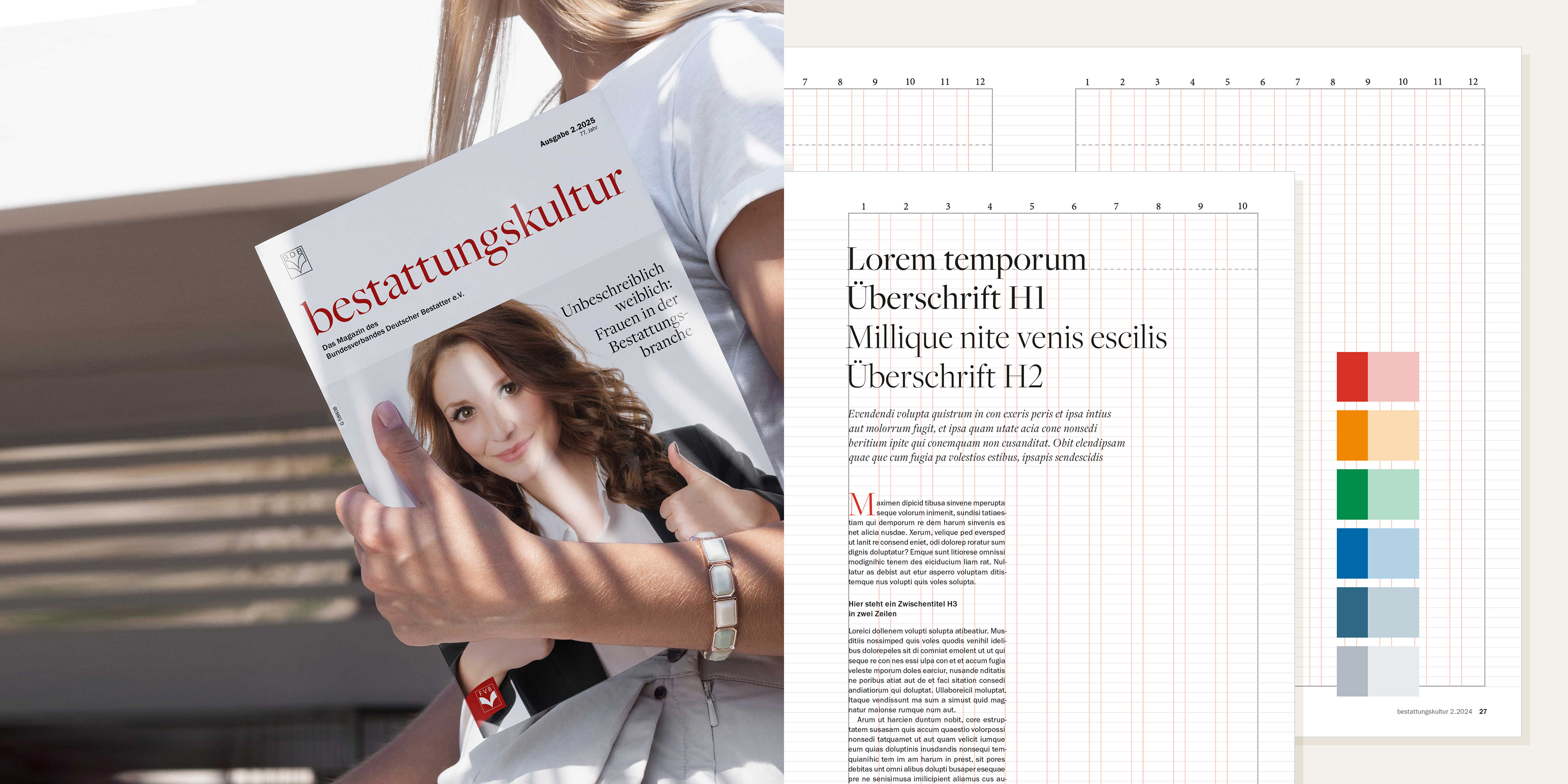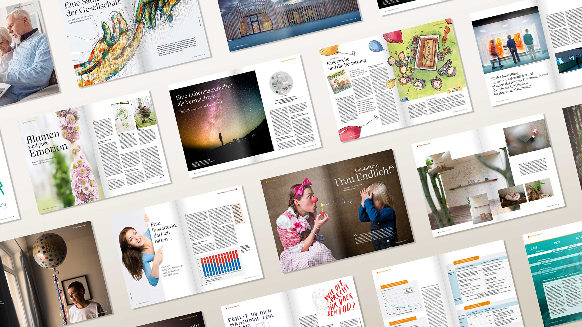 Project: Professional Journal, published monthly, Supplements | Client: German Federal Association of Funeral Directors (Bundesverband Deutscher Bestatter e.V.), Düsseldorf | Services: Editorial Design: Conception, Layout and Production
